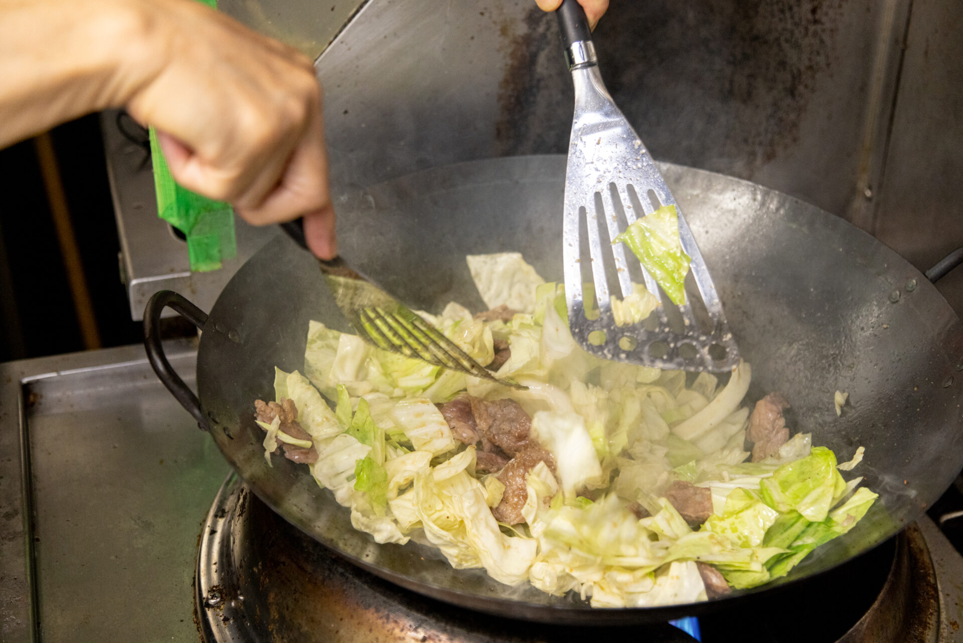よく熱した鉄板に、キャベツと角切り肉をたっぷりのニンニクとラードで一気に炒め上げる、シンプルながら力強い味わい。一度食べたら病みつきになる、博多の定番メニューです。